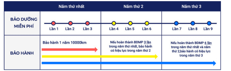 – Khách hàng vẫn có quyền sử dụng phiếu bảo dưỡng miễn phí đến hết năm thứ 3 cho dù đã bỏ qua các phiếu bảo dưỡng trước đó và thời hạn bảo hành của xe đã hết hiệu lực.