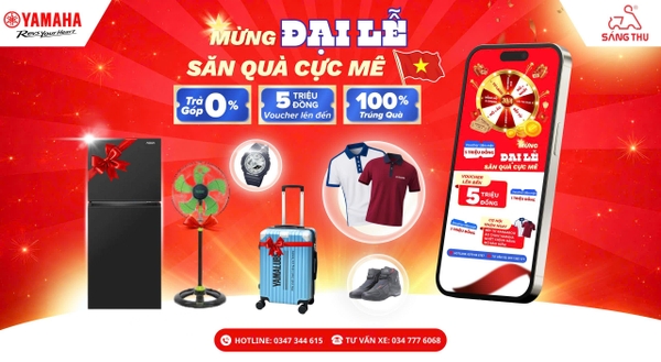 Nhân dịp lễ 30/4 - 1/5, Yamaha Sáng Thu triển khai chương trình ưu đãi đặc biệt dành cho khách hàng mua xe với cơ hội nhận quà tặng 100% thông qua vòng quay may mắn.