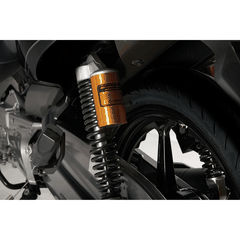 Giảm xóc sau được trang bị hộp dầu hỗ trợ giúp xe vận hành êm ái và giữ được tính ổn định khi cua quẹo (Chỉ có trên phiên bản RC).